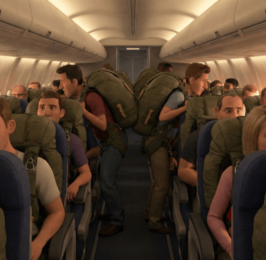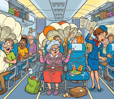 Pense em 300 indivíduos em pânico. Agora imagine essas 300 pessoas lutando para vestir uma mochila cheia de tiras e fivelas, em um espaço aéreo confinado, quando o avião balança.